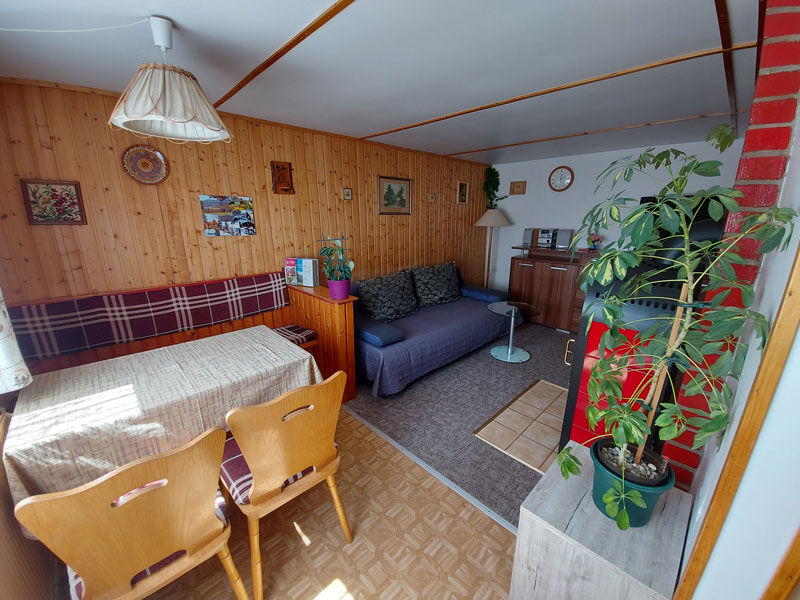 - gemütlicher Wohnraum mit Kaminofen, SAT TV, Radio